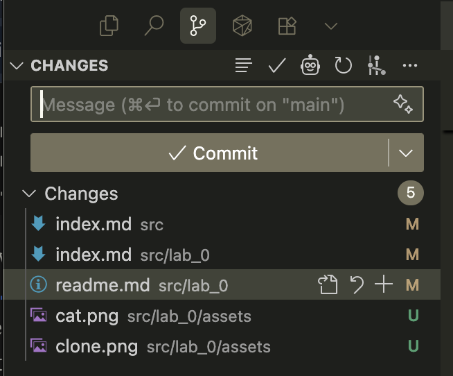 When you have made a change that you want to keep, you can commit your changes. VS Code has some great tools built in to help with this process, which are a bit easier, or you can leverage the command line.